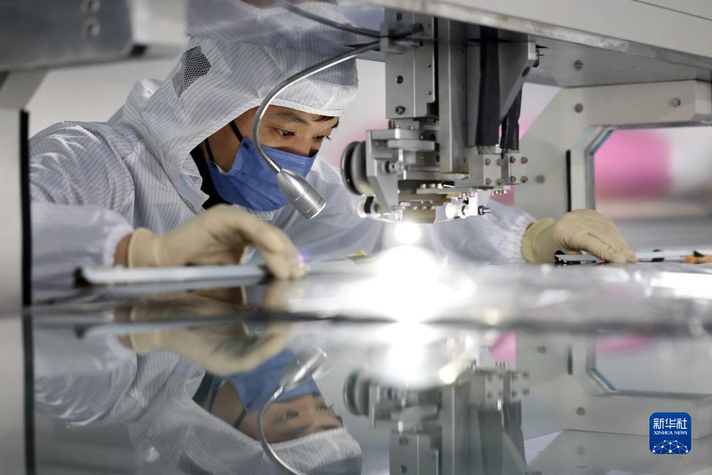 1月5日,在合肥市瑤海區長三角數字科技示范園,合肥統旭智慧科技有限公司的員工在智慧顯示屏生產線上作業。