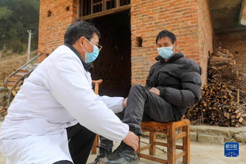 1月5日,在衡陽縣溪江鄉松竹村,家庭醫生上門為村民進行健康檢查。