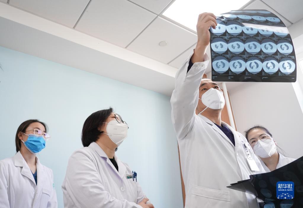 1月4日,中日友好醫院醫生陳欣(左三)在太陽宮社區衛生服務中心查房。