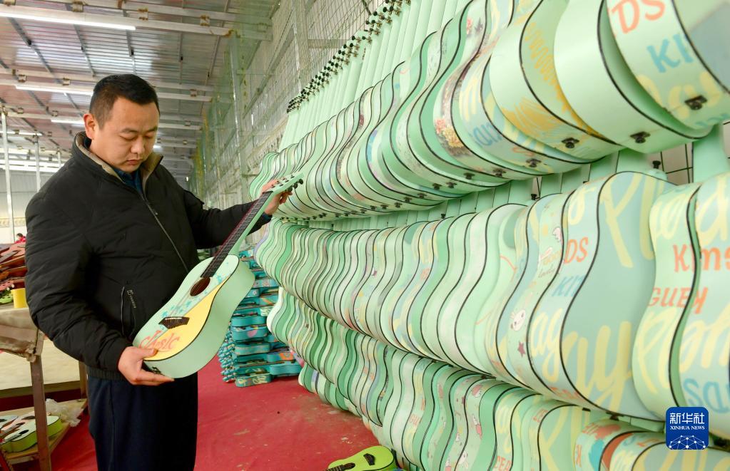 1月5日,技術人員在夏邑縣太平鎮劉花園村一生產車間抽檢吉他質量。