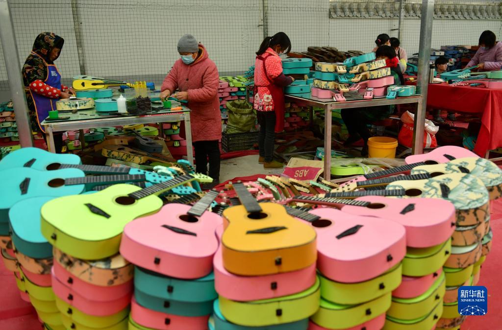 1月5日,工人在夏邑縣太平鎮劉花園村一生產車間加工吉他。