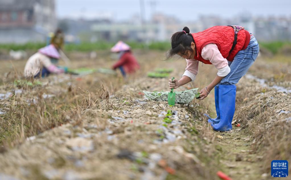 1月5日,在海南省澄邁縣金安農場,農民在種植節瓜苗。