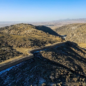 固陽秦長城局部(1月6日攝,無人機照片)。