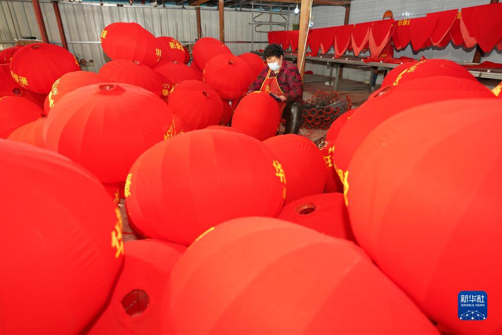 春節臨近,河北省沙河市十里亭鎮曹章村燈籠制作工坊的工人忙著趕制大紅燈籠,供應節日市場。曹章村是遠近聞名的“燈籠制作專業村”,燈籠生產成為當地農民增收的重要途徑。