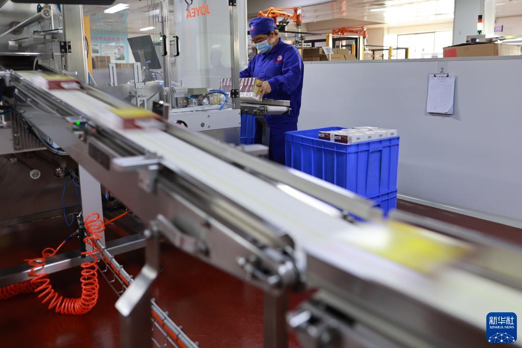 1月6日,在貴州安順一家藥企,工作人員在藥品生產線上工作。