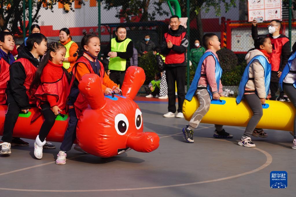 當日,重慶市北碚區兩江名居新時代文明實踐站在兩江名居公租房小區舉行親子趣味運動會,小區內的家長帶著孩子參與“摸石頭過河”“運轉乾坤”“乘風破浪”“萬眾一心”“拔河”等項目的比賽,喜迎新春佳節的到來。