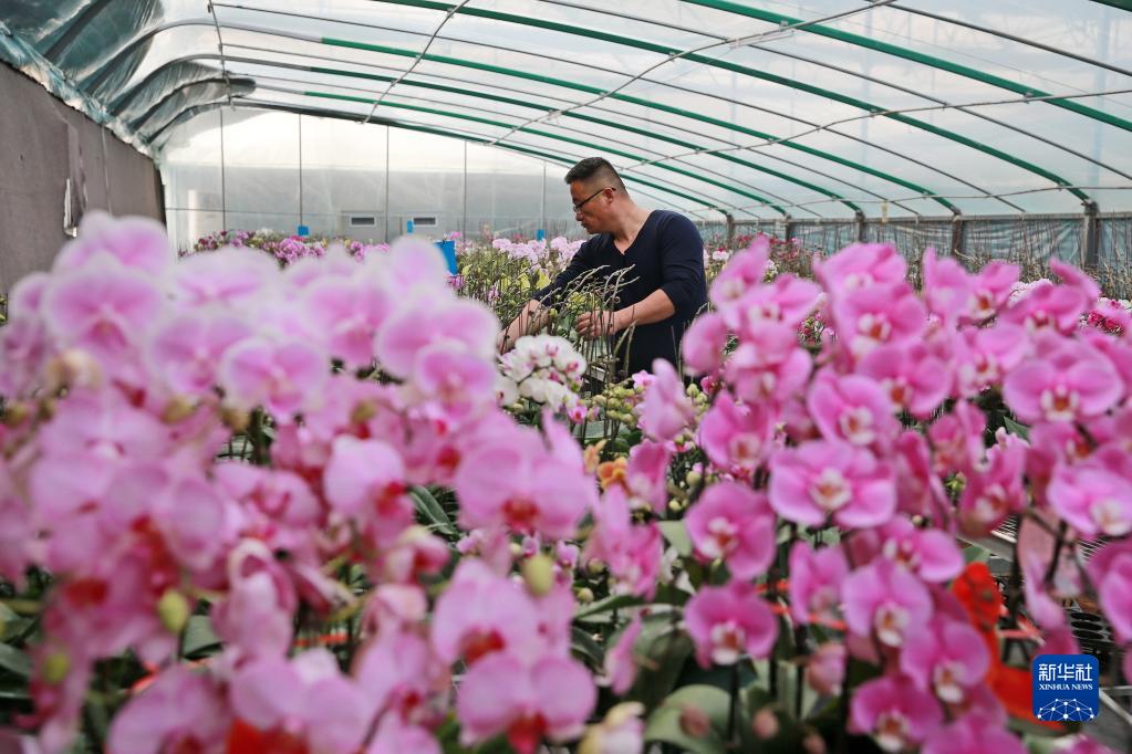 春節臨近,在安徽省淮北市烈山區華家湖社區蝴蝶蘭種植基地智能化溫室大棚內,10萬余株各色蝴蝶蘭競相綻放。工作人員忙著管理、搬運蝴蝶蘭,供應各地節日市場。