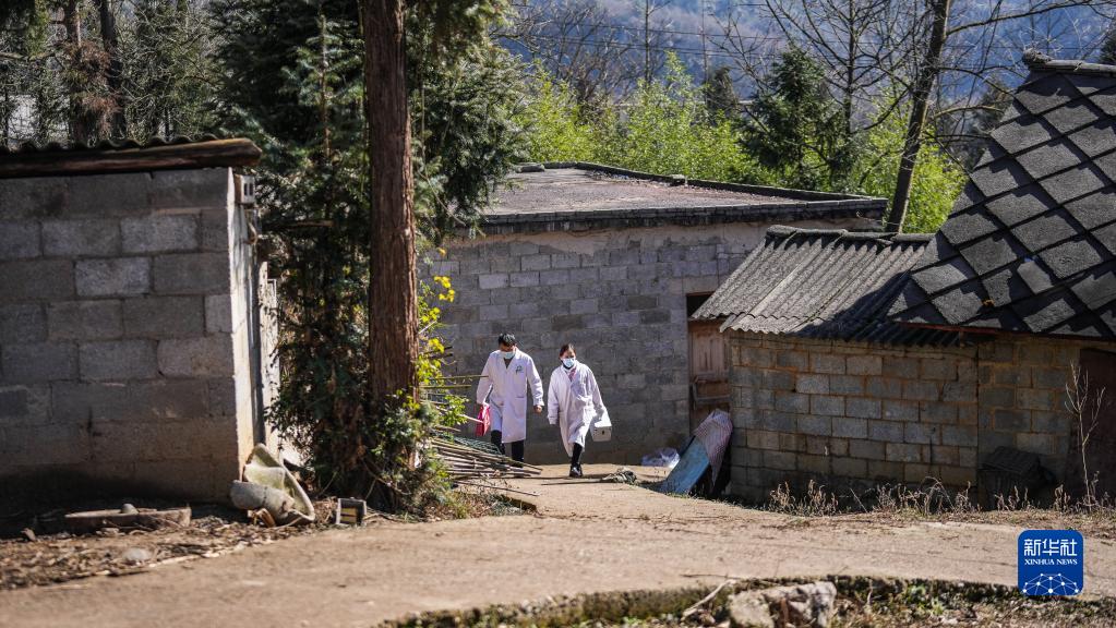 1月6日,醫務工作者在六盤水市鐘山區金盆苗族彝族鄉雙塘村走訪。