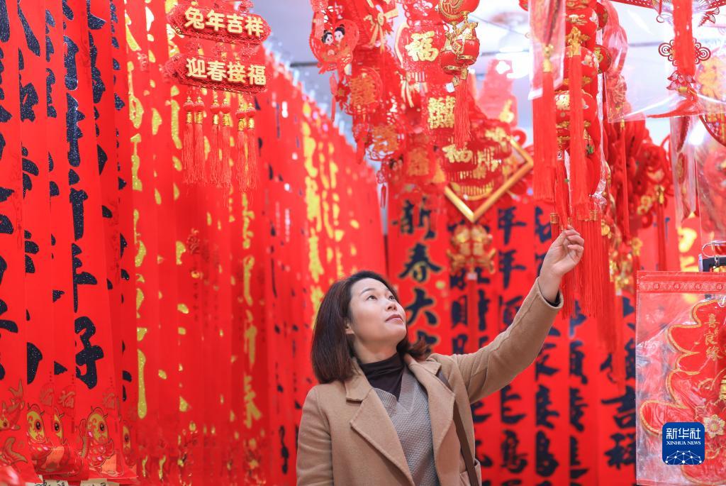 1月6日,市民在貴州省從江縣一處年貨市場選購新春飾品。
