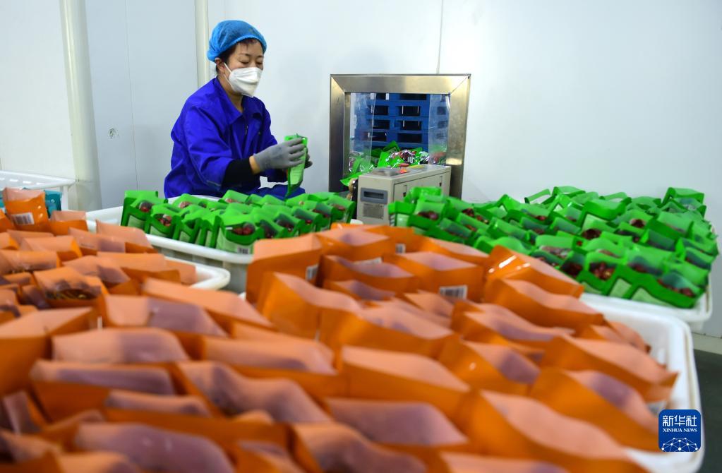 1月6日,滄州市新華區一家食品企業的工人在包裝調料。