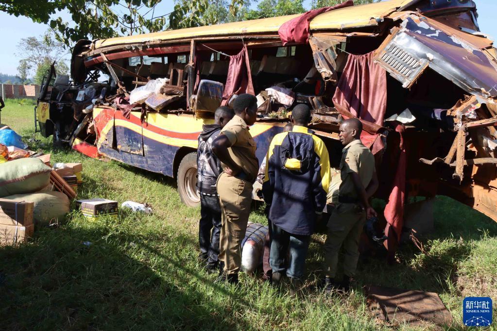 1月6日,在烏干達首都坎帕拉通往古盧的公路旁,人們查看事故現場。