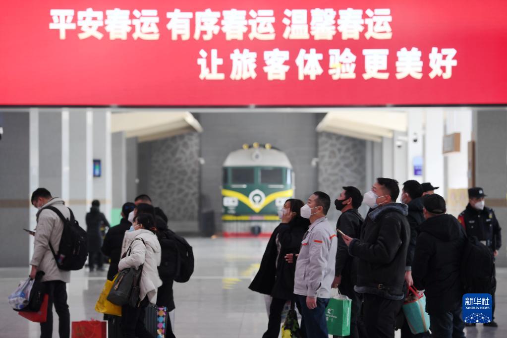 1月7日,旅客在西安站候車大廳查看車次信息。