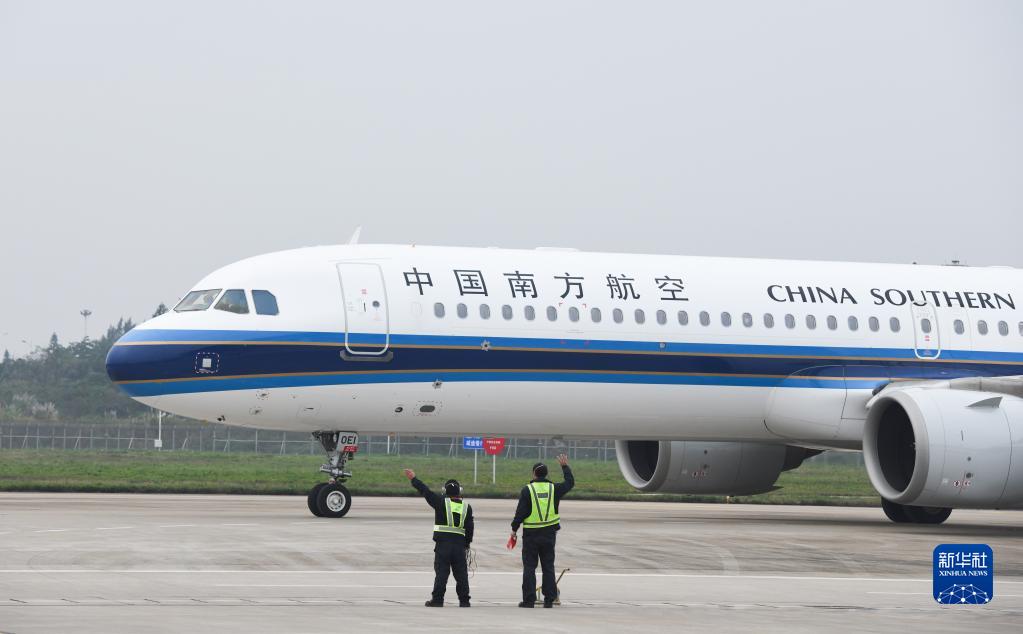 1月7日,在??诿捞m國際機場,工作人員揮手送別即將起飛的飛機。