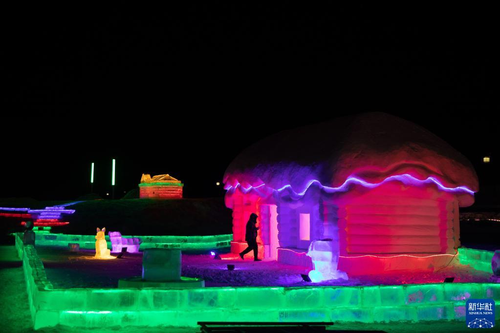 寒夜降臨,市民游客在素有“神州北極”之稱的黑龍江省漠河市體驗別樣的北國之夜。