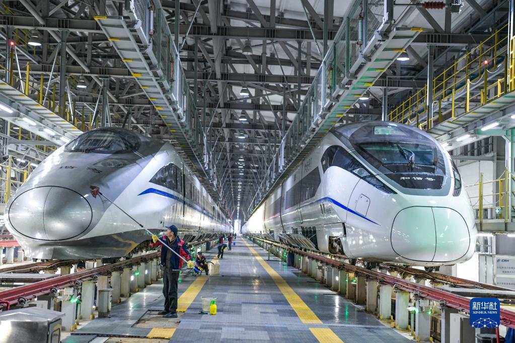 2023年春運于1月7日啟動。中國鐵路成都局集團有限公司貴陽車輛段貴陽北動車運用所的工作人員對動車組列車進行檢修、保養、清潔,確保春運期間列車運行安全和旅客乘車環境舒適。
