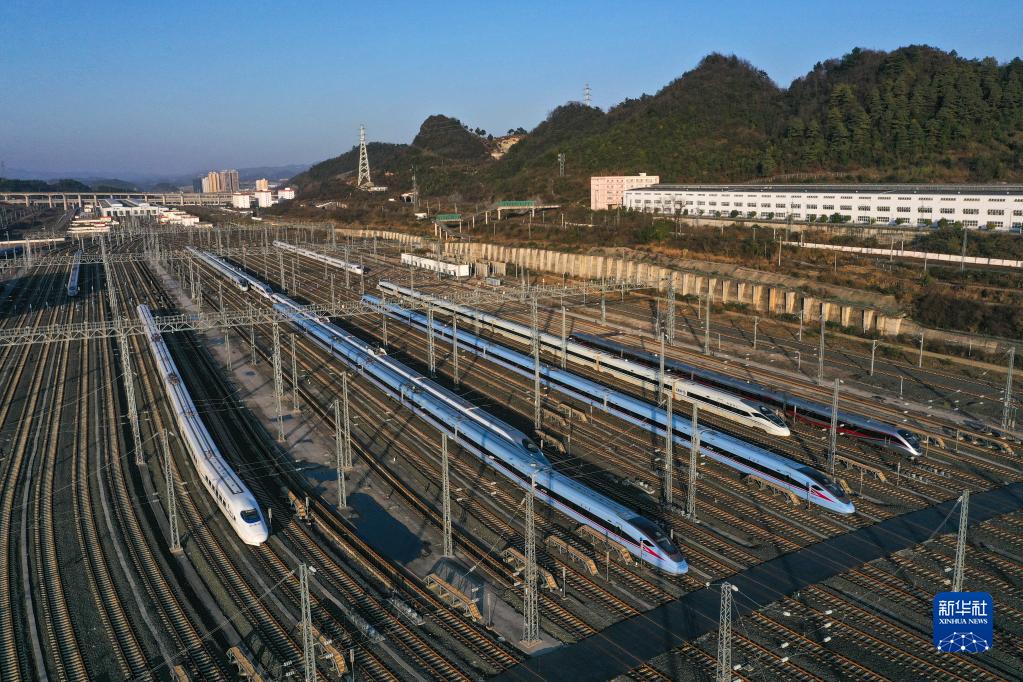 2023年春運于1月7日啟動。中國鐵路成都局集團有限公司貴陽車輛段貴陽北動車運用所的工作人員對動車組列車進行檢修、保養、清潔,確保春運期間列車運行安全和旅客乘車環境舒適。