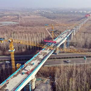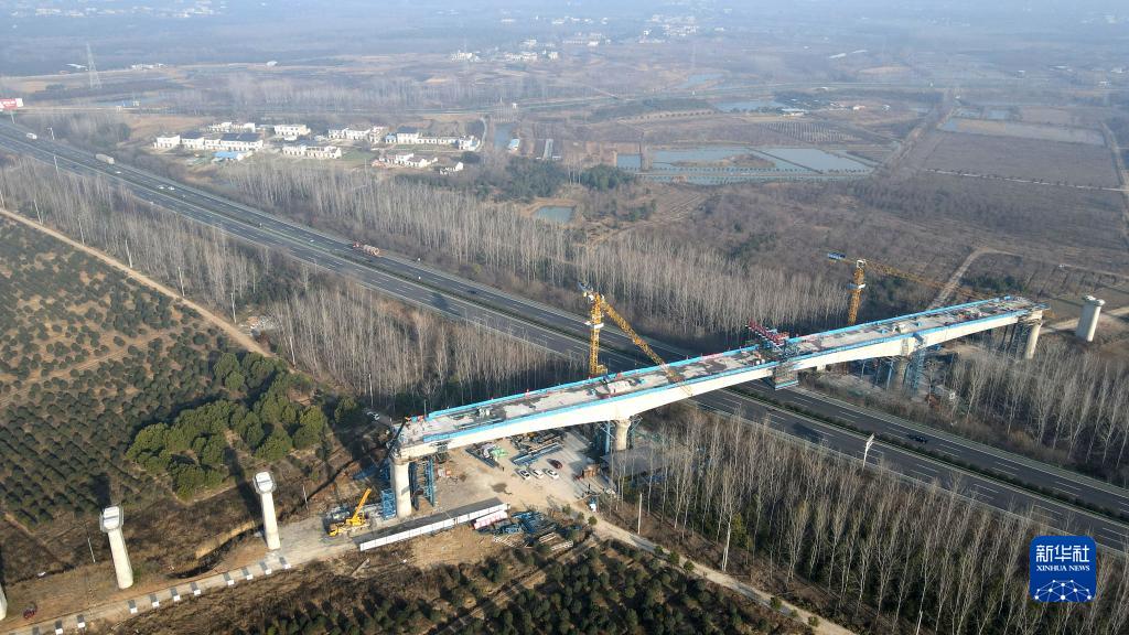 這是完成合龍施工的合新鐵路安徽段跨滬陜高速連續梁(1月7日,無人機照片)。