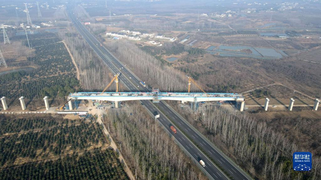 這是完成合龍施工的合新鐵路安徽段跨滬陜高速連續梁(1月7日,無人機照片)。