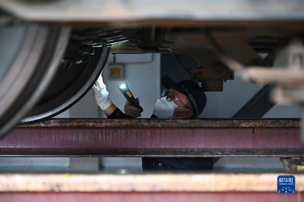 春運期間,在中國鐵路南昌局集團有限公司福州車輛段和動車段內,工作人員對綠皮火車、高鐵動車等多種車型進行檢修、維護?!盎疖囜t生”對列車進行全方位排障,確保春運期間列車運行安全。
