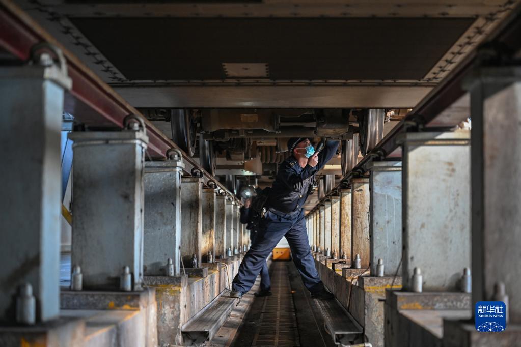 春運期間,在中國鐵路南昌局集團有限公司福州車輛段和動車段內,工作人員對綠皮火車、高鐵動車等多種車型進行檢修、維護?!盎疖囜t生”對列車進行全方位排障,確保春運期間列車運行安全。