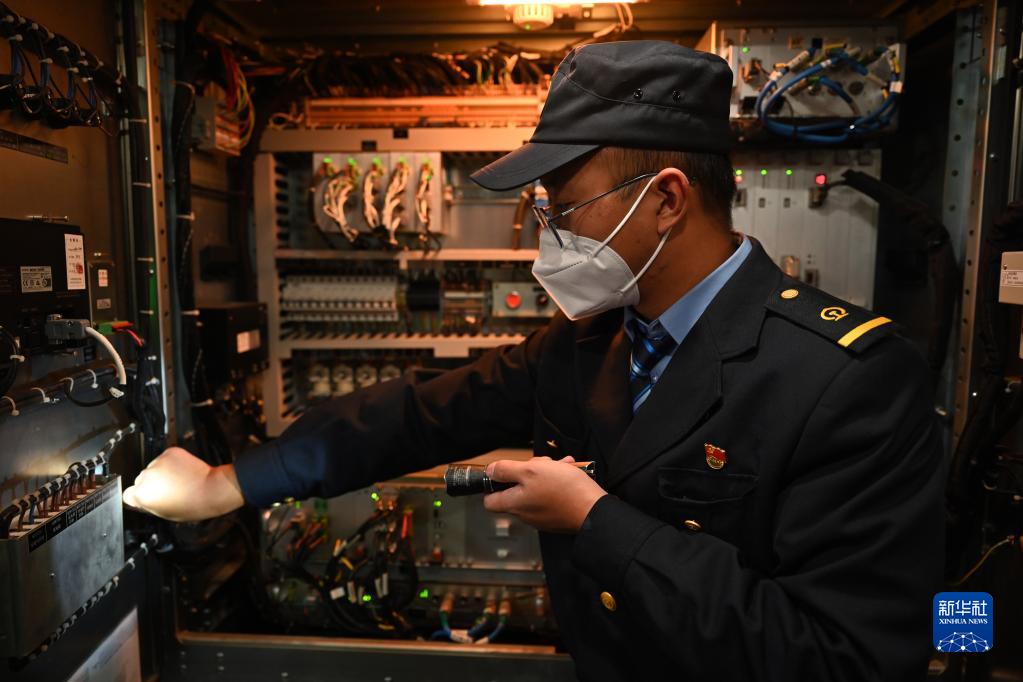 1月7日,在中國鐵路南昌局集團有限公司福州車輛段,工作人員在檢修“綠巨人”列車的配電間設備。
