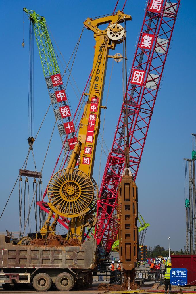 當日,由中鐵十一局承建的深(深圳)江(江門)鐵路深莞隧道西段出口明挖隧道開始地連墻施工,吊裝的首幅地連墻鋼筋籠長36.5米,重量約65噸。