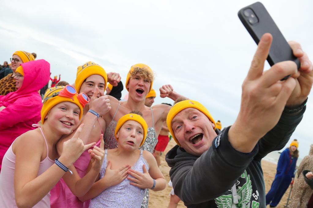 1月7日,人們在比利時奧斯坦德舉行的“跳北海慶新年”活動上合影。