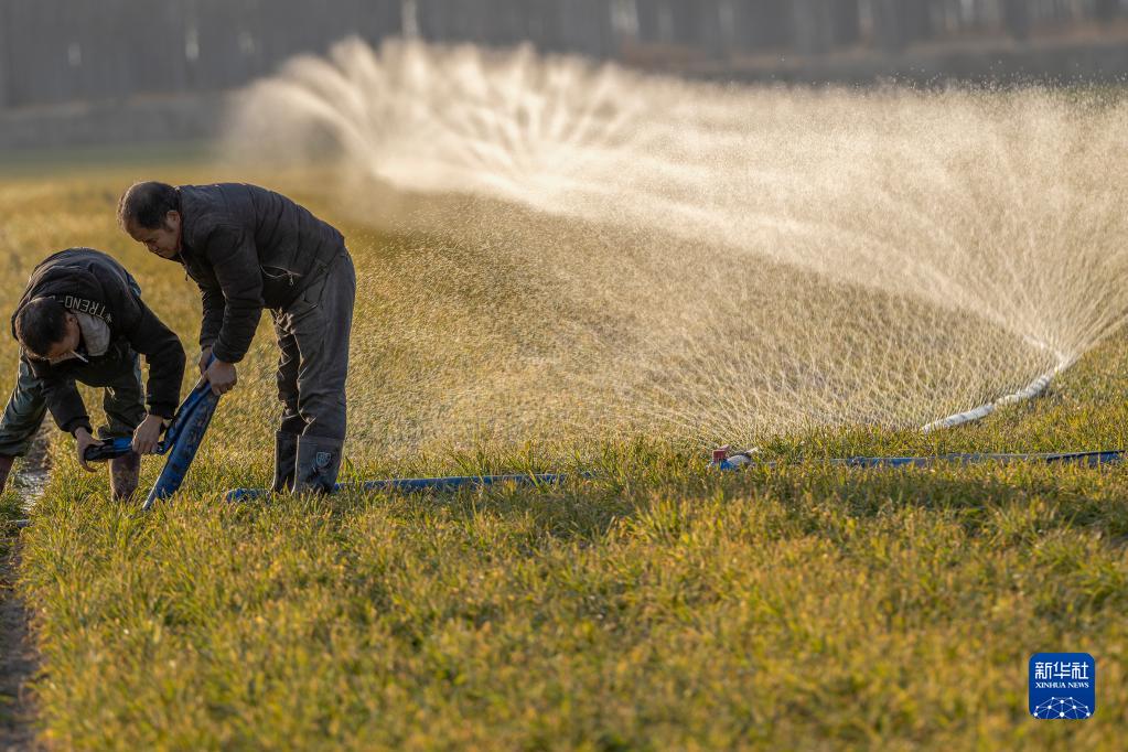 當前正值培育冬小麥生長的關鍵時期。在河南三門峽市,農民積極為冬小麥澆灌封凍水,確保冬小麥安全越冬。