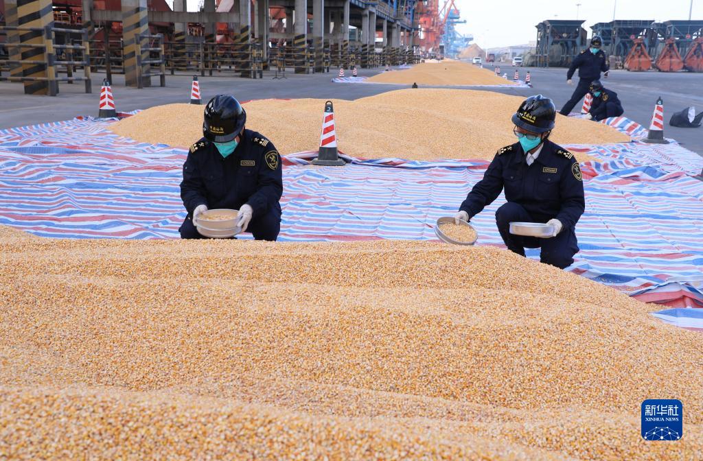 1月7日,海關人員對巴西玉米進行抽檢。