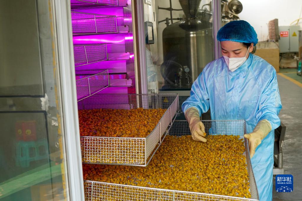 1月7日,在重慶市北碚區靜觀鎮一家農業專業合作社,工作人員在查看臘梅干花。