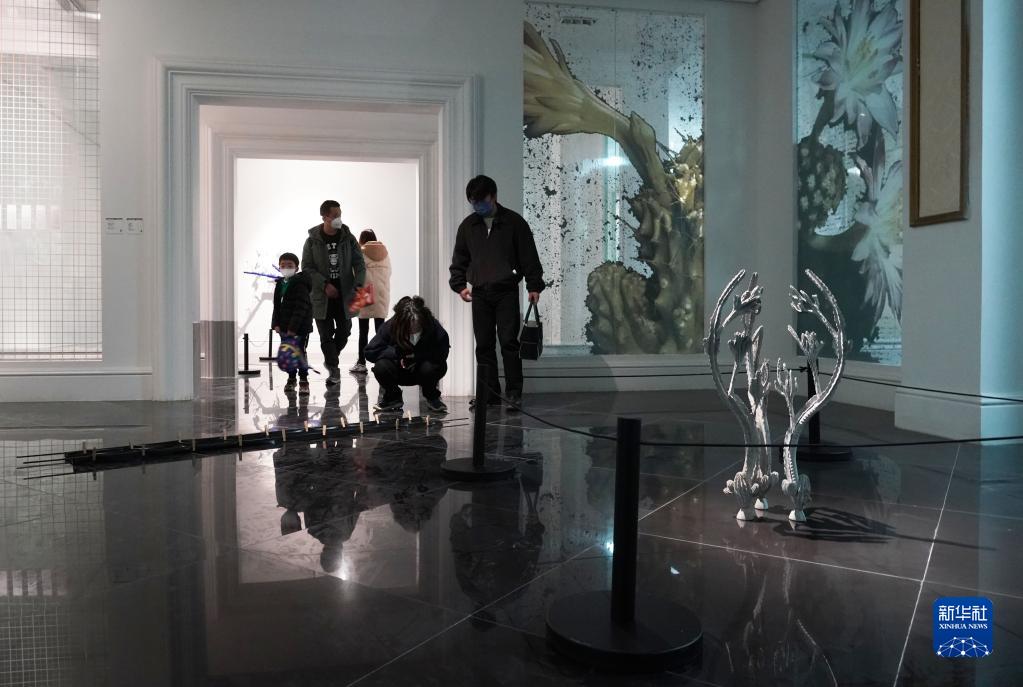 1月8日,在北京友誼商店,觀眾參觀北京藝術雙年展。