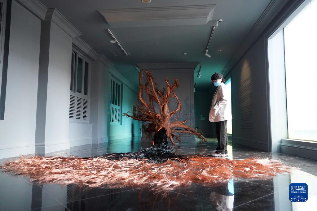 1月8日,在北京友誼商店,觀眾參觀北京藝術雙年展。