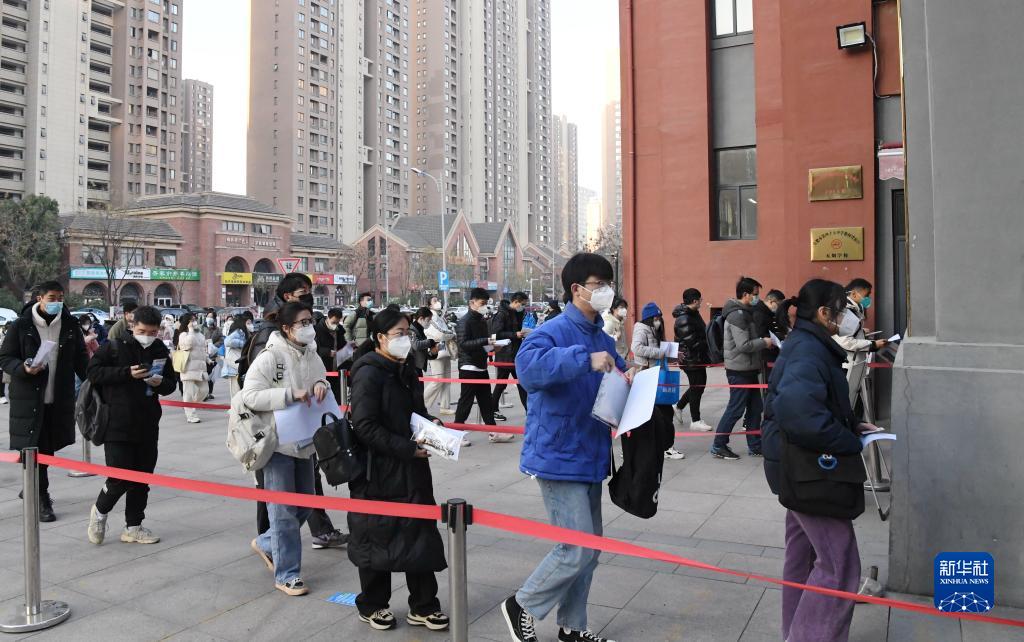 1月7日-8日,中央機關及其直屬機構2023年度考試錄用公務員筆試舉行。這是1月8日,在安徽省合肥市第四十五中學橡樹灣校區考點,考生入場準備參加公共科目筆試。