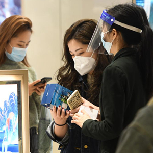 1月8日,游客在中免集團??谌赵聫V場免稅店選購免稅商品。
