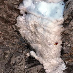 1月8日,在云夢山景區,攀冰愛好者在冰壁上攀爬(無人機照片)。