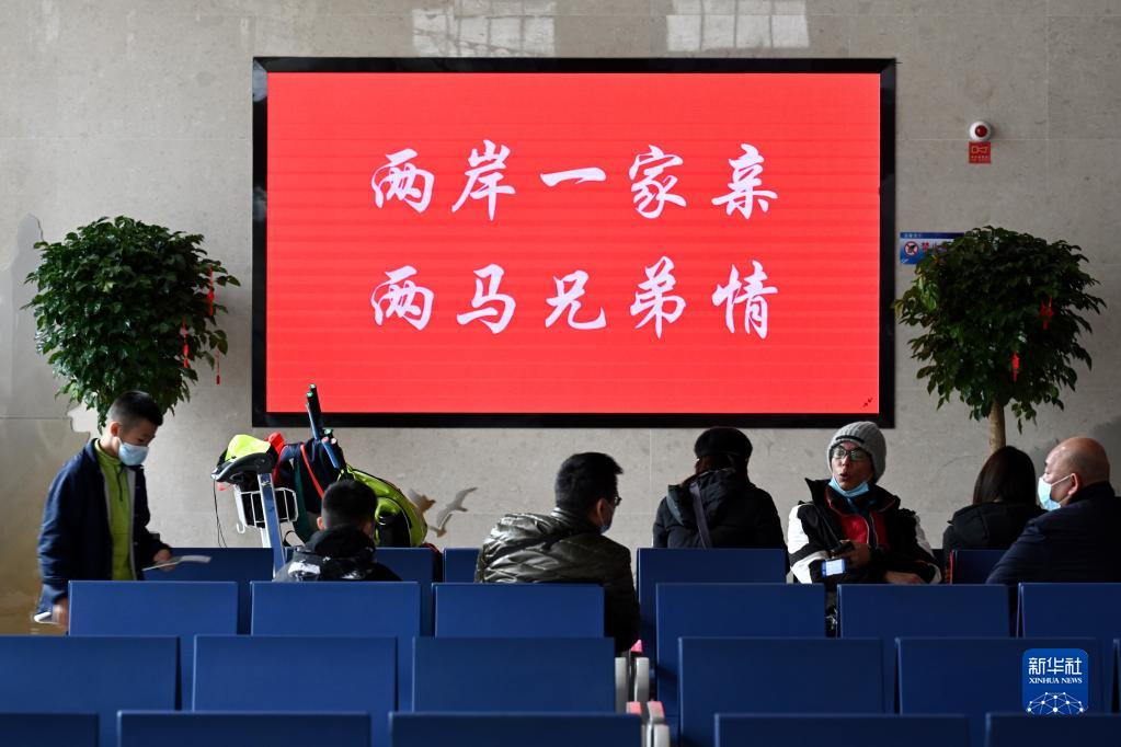 1月8日,臺胞在福州馬尾瑯岐碼頭候船大廳等候登船。
