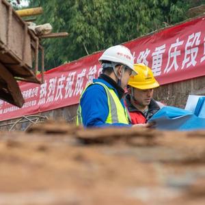 1月8日,工作人員在位于重慶市大足區境內的成渝中線高鐵建設施工現場作業。