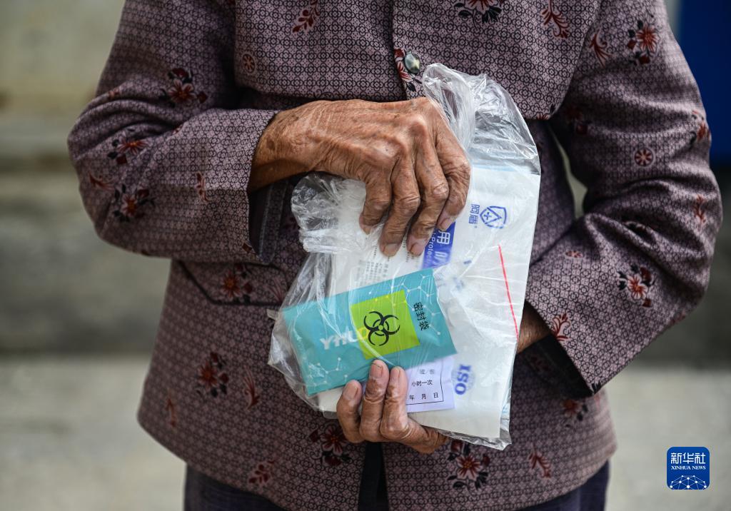 連日來,海南省文昌市各地為高齡老人免費發放由藥品、抗原檢測試劑、N95口罩和醫用外科口罩構成的防疫“健康包”。