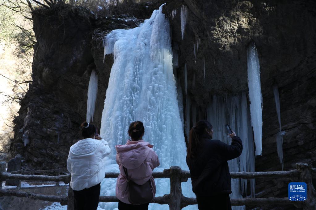 入冬以來,甘肅省隴南市宕昌縣境內官鵝溝景區的冰瀑景觀吸引了眾多游客。