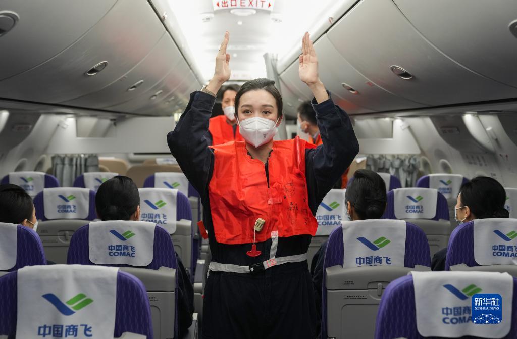 近日,為保證C919飛機順利投入運營,東航的C919飛機乘務員開始接受集中培訓。培訓內容包括機型概述、撤離設備和程序、撤離滑梯演練和滅火演練等。