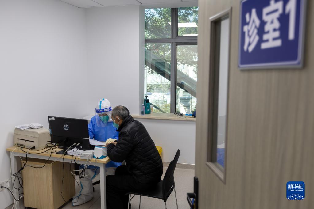 1月8日,在上海市閔行區顓橋社區衛生服務中心發熱哨點診室,醫生為患者開具抗新冠病毒小分子藥。