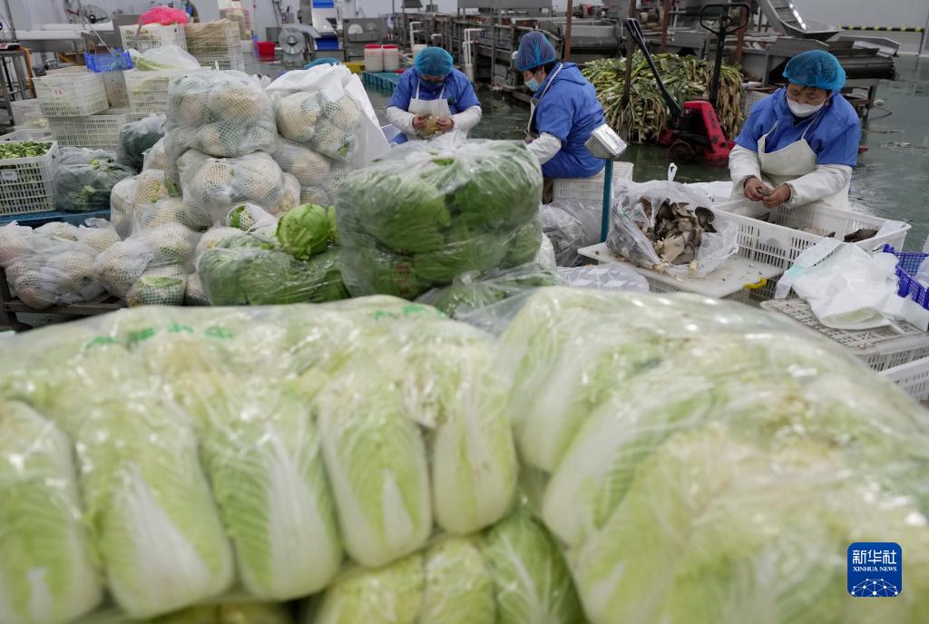 1月9日,盧龍縣蛤泊鎮兩縣店村一家蔬菜種植合作社的社員在分揀包裝蔬菜。