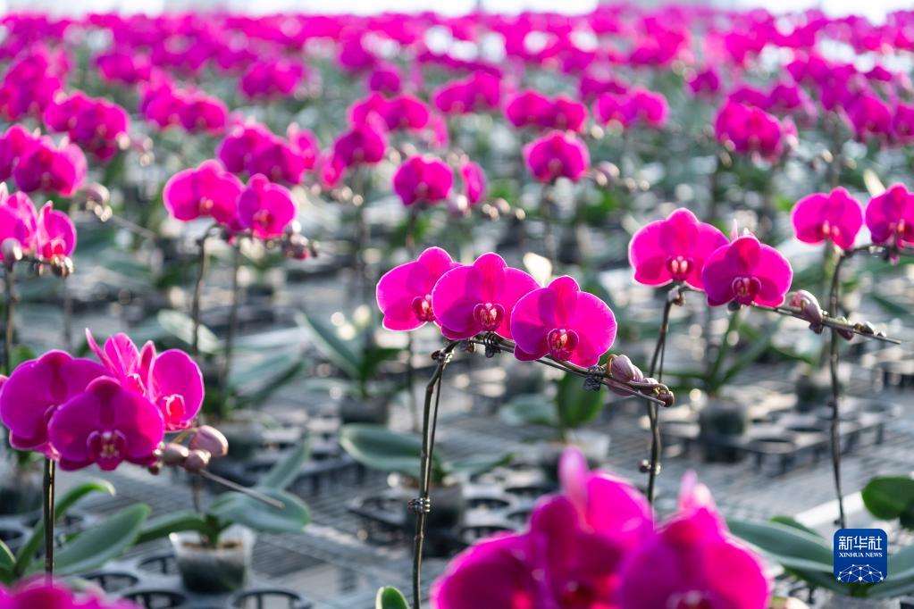 這是北大荒建三江國家農業科技園區內種植的蝴蝶蘭(1月9日攝)。