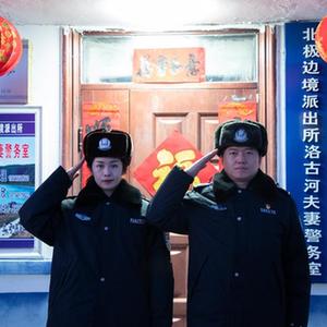 1月8日,史先強和妻子沈欣在洛古河夫妻警務室前敬禮。