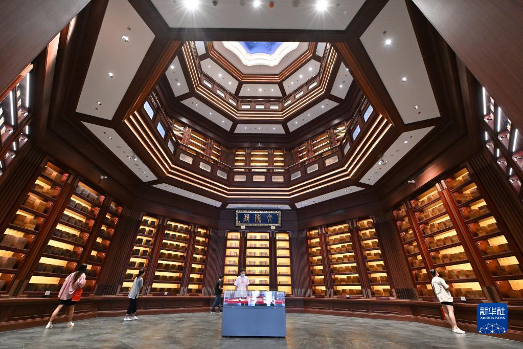2022年7月30日,觀眾在中國國家版本館中央總館文瀚廳內參觀。當日,中國國家版本館開館暨展覽開幕式在中國國家版本館中央總館舉行。