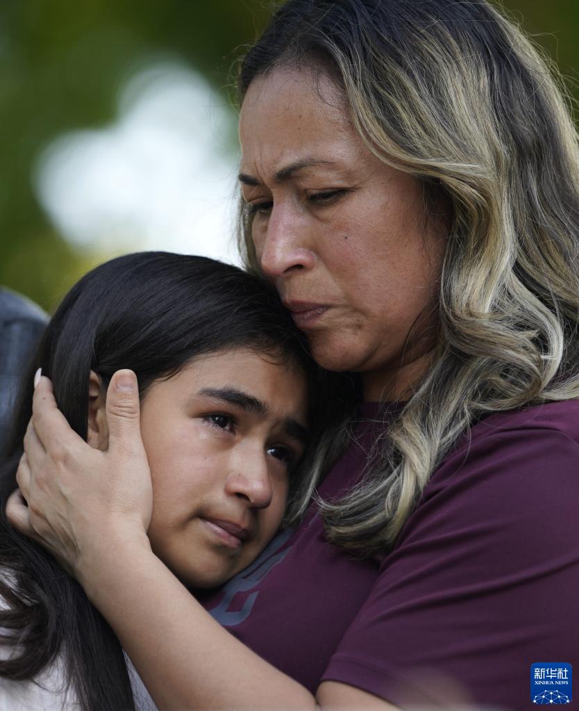 2022年5月26日,人們在美國得克薩斯州南部尤瓦爾迪市哀悼槍擊事件遇害者。尤瓦爾迪市5月24日發生惡性校園槍擊事件,槍手闖入羅布小學,殺害19名學生和兩名教師,釀成美國10年來致死人數最多的校園槍擊事件。