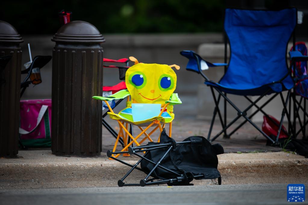 2022年7月4日,觀眾座椅遺留在美國伊利諾伊州海蘭帕克市“獨立日”游行的槍擊現場。海蘭帕克市“獨立日”游行槍擊事件造成至少7人死亡、數十人受傷。