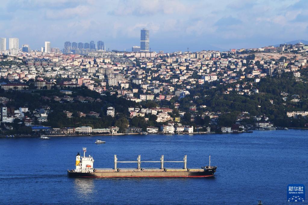 2022年8月7日,一艘從烏克蘭出發的運糧船駛過土耳其伊斯坦布爾博斯普魯斯海峽。
