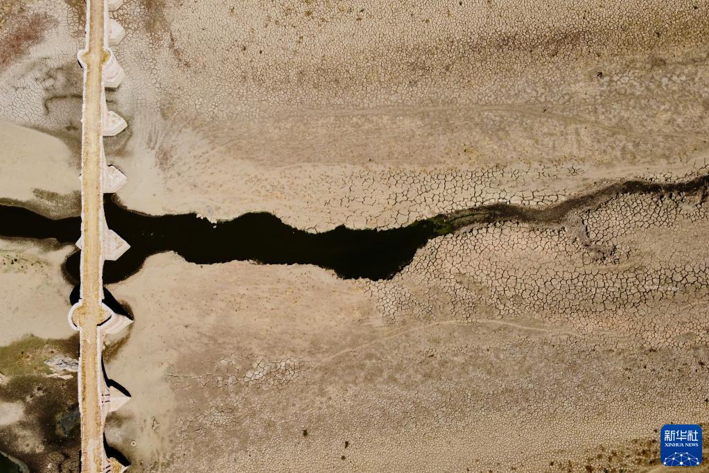 這是2022年8月15日用無人機拍攝的干涸的西班牙錫哈拉水庫,上世紀50年代因水庫落成而被淹沒的梅斯塔古橋重見天日。西班牙2022年夏天經歷多輪熱浪,全國水庫蓄水量不足40%。