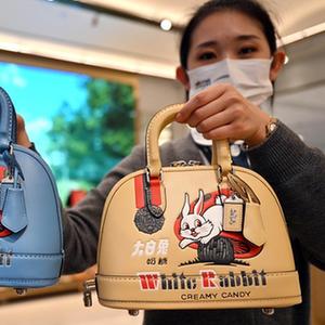 在??趪H免稅城拍攝的聯名款兔年主題手提包(1月8日攝)。